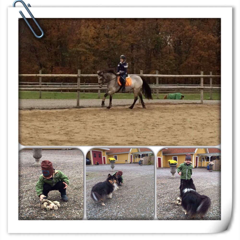Jättebra träning för Thea. Connie är så mycket större än vad hon är van vid sedan tidigare på Buster och hon trillar lätt fram och ”åker med”. Stina accepterar INTE det utan ser till att hon kommer till ridning. Inga genvägar heller med ”nickedockor” till hästar accepteras. Och hon ser allt -en dålig avsaktning och hon får göra om den tills den sitter.