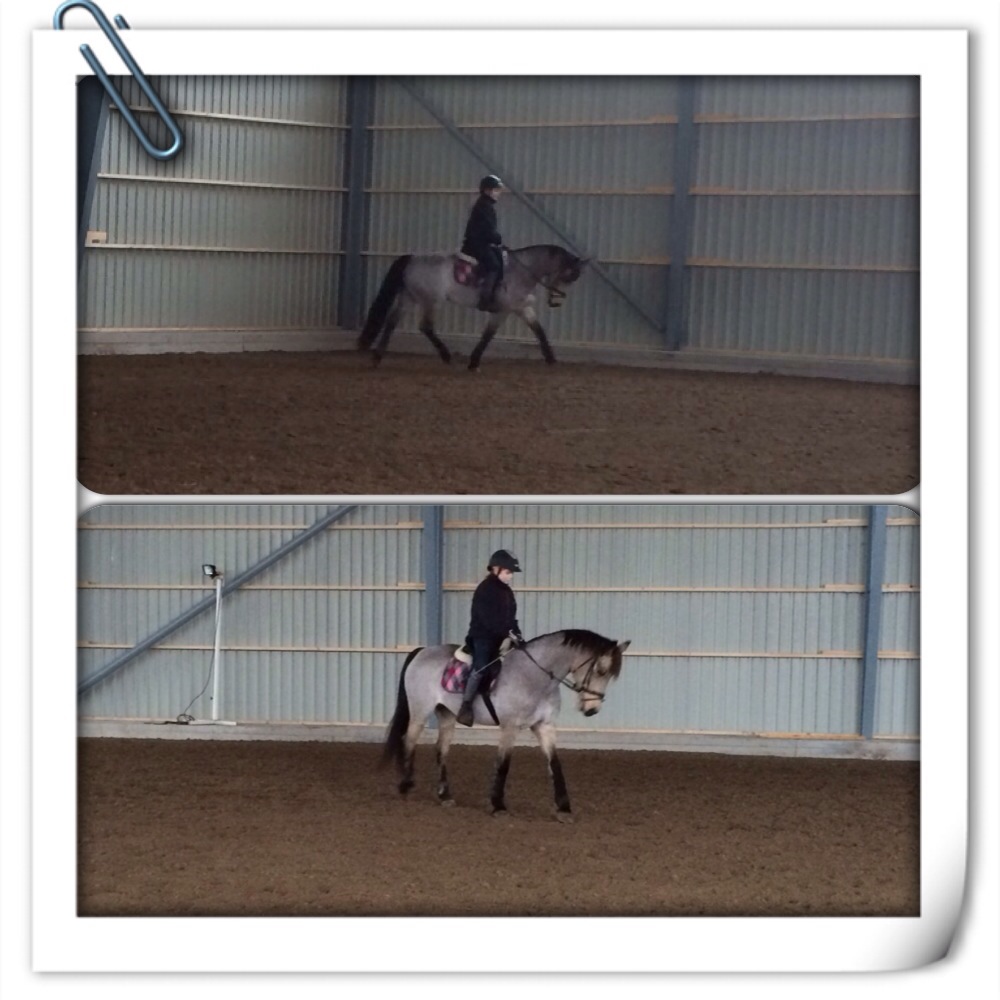 Efter att hon fått busa av sig kunde Thea hoppa upp igen och rida som vanligt. På eget bevåg tränade hon skänkelvikning som hon, dvs Thea, har svårt att få grepp om. Är på god väg nu.