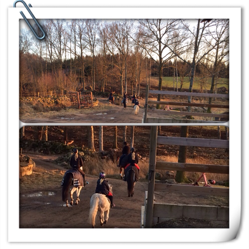 Det hade blivit en lugn tur. Redan i stallet hade flickorna fått LOVA Maria att inte galoppera! Domingo är visst inte så van vid skogen 🙂