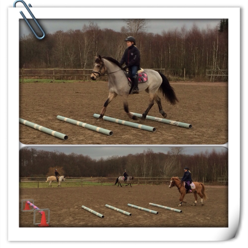 Det hade gått bra för tjejerna. Båda ponnyerna hade varit lite okoncentrerade i början. Inte konstigt! Båda har vilat pga vaccination och de har inte varit i ridhuset mer än någon gång. Hade gått fint i slutet.